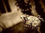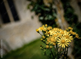 Wild yellow flowers seen growing in a rural English graveyard during late autumn.