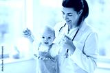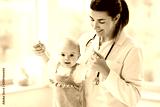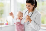 medicine, healthcare and pediatrics concept - female pediatrician or neuropathist doctor or nurse checking baby girl patient's health at clinic or hospital