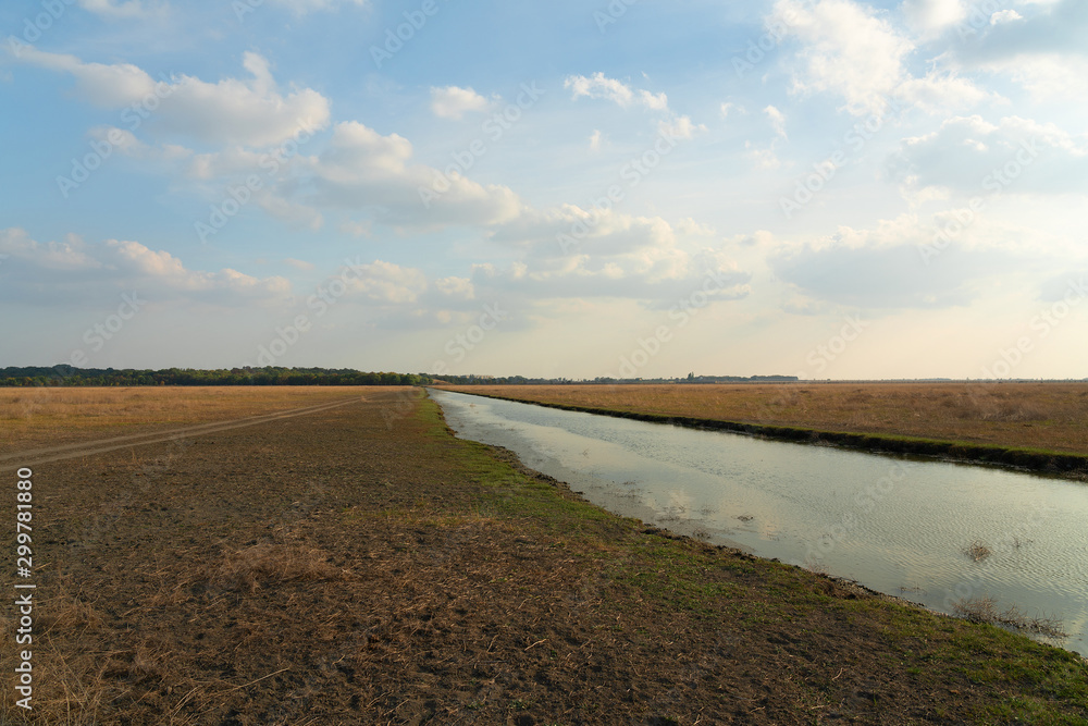 Steppe river landscape view in autumn. Askania-Nova is a biosphere reserve (sanctuary) located in Kherson region, Ukraine.