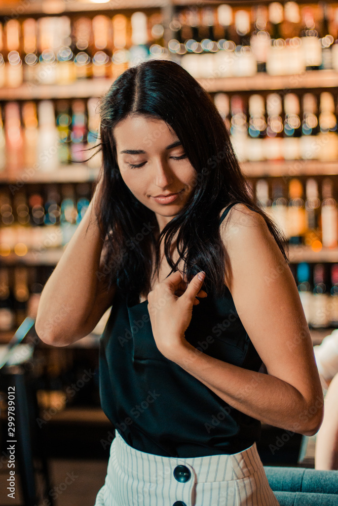 Beautiful woman in cafe.