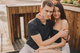 Loving couple hugging in the street.