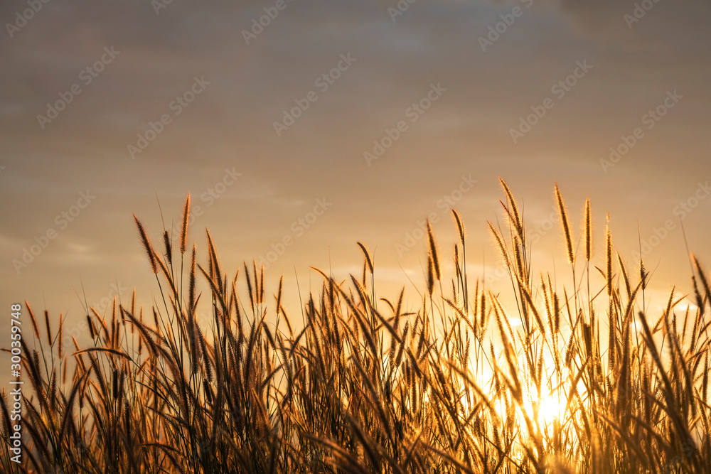 grass flower with golden time of sunset as background
