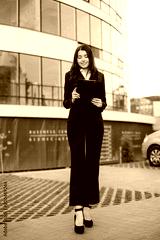 Successful smile businesswoman or entrepreneur standing in front of his office.