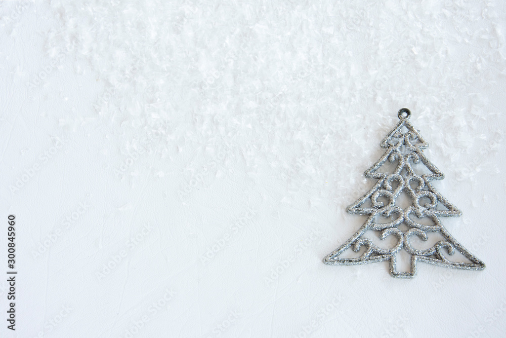 Christmas card silver Christmas tree on a bright shimmering pastel background.