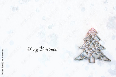 Christmas card silver Christmas tree on a bright shimmering pastel background.