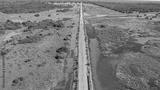 Aerial view of Transpantaneira dirt road crossing straight the typical landscape of North Pantanal Wetlands, Mato Grosso, Brazil
