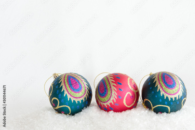 Christmas, Christmas card with motifs of Christmas decorations, baubles, fawns, inscriptions.