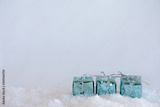 Christmas, Christmas card with motifs of Christmas decorations, baubles, fawns, inscriptions.