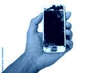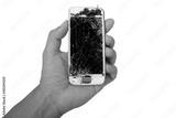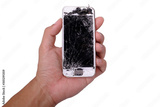 hand holding smartphone touch screen broken isolate on white background