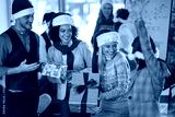 Christmas party in office. people in santa hat celebrating Christmas in office