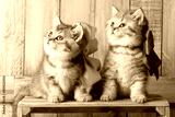 Cute kittens playing in wood shavings