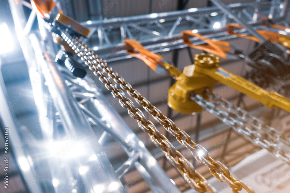 Lever winch. Tal lever. Manual chain hoist. Shallow depth of field. Focus on Chain Link