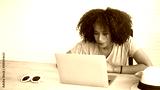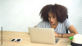 African woman working with laptop from home serious entrepreneur mindset