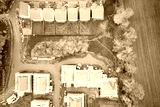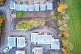 Suburban house development aerial view with countryside views uk