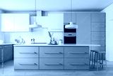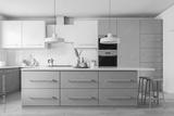 White and beige kitchen interior with bar