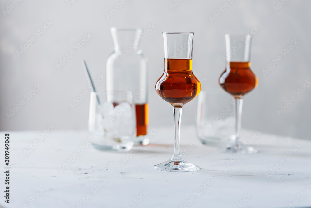 A shot of a strong ligueur with ice