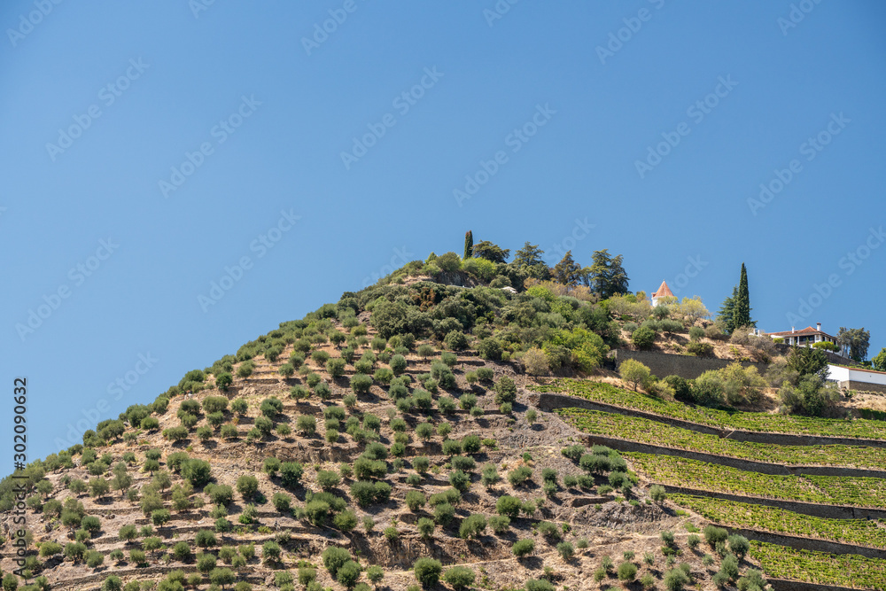 Terraces of vines and vineyards on the banks of the River Douro near Vila Real in Portugal