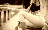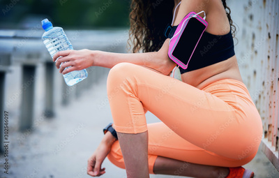 Resting after training. Young woman doing fitness outdoors, close up photo. Sport, fitness, recreation concept