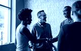 Hand Shake in interview. Diverse South African business meeting in modern office space