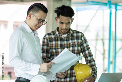introduce and teach Apprentice engineer in construction site, Leader and development concept