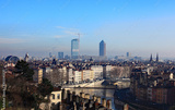 La ville de lyon dans la brume poluée du matin