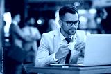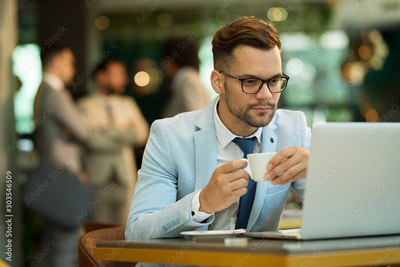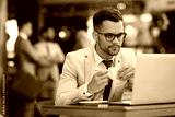 Businessman Using Laptop Whilst Working In Coffee Shop