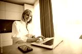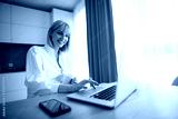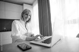 Beautiful pregnant business woman and smiling while sitting the working place at home