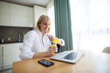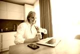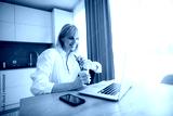 Beautiful pregnant business woman and smiling while sitting the working place at home