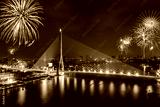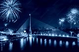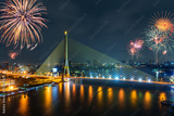 Big Fireworks at Rama VIII Suspension bridge with lighting