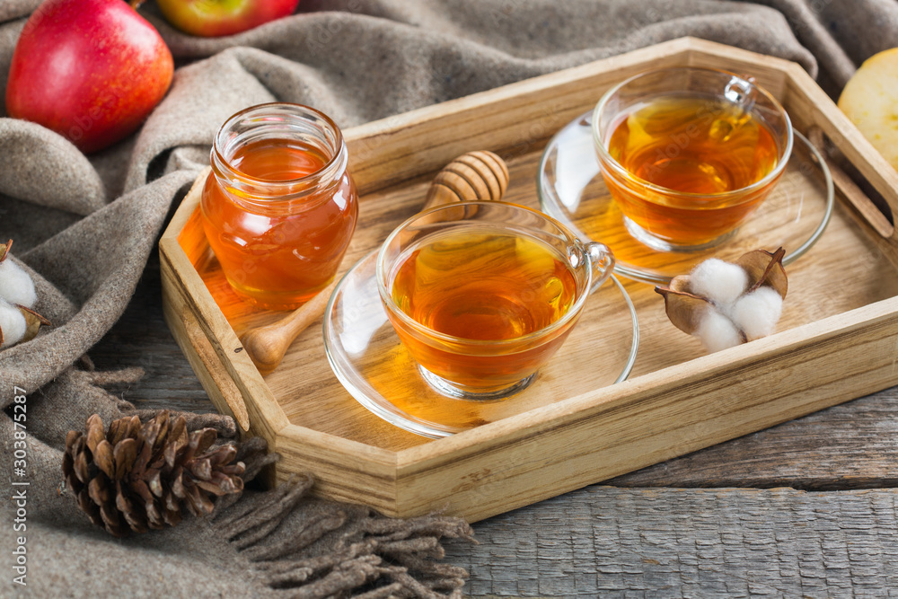 Autumn, fall, winter hygge home decor composition, coziness concept