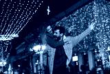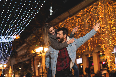 Young happy couple having a good time at night in a big city
