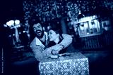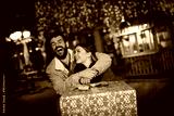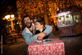 Christmas gift, happy couple with Christmas and New Year gift on street