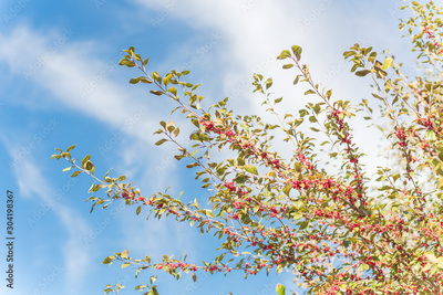 Beautiful Texas Winterberry (Ilex Decidua) red fruits on tree branches on sunny fall day