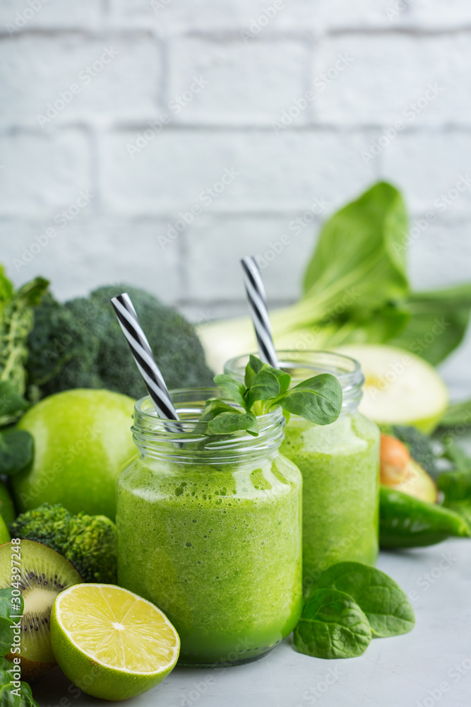 Green smoothie with vegetables for healthy, raw, vegan diet