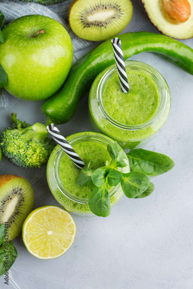 Green smoothie with vegetables for healthy, raw, vegan diet