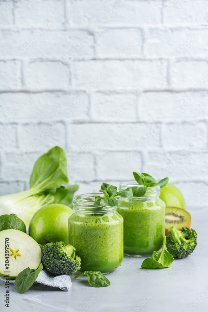 Green smoothie with vegetables for healthy, raw, vegan diet