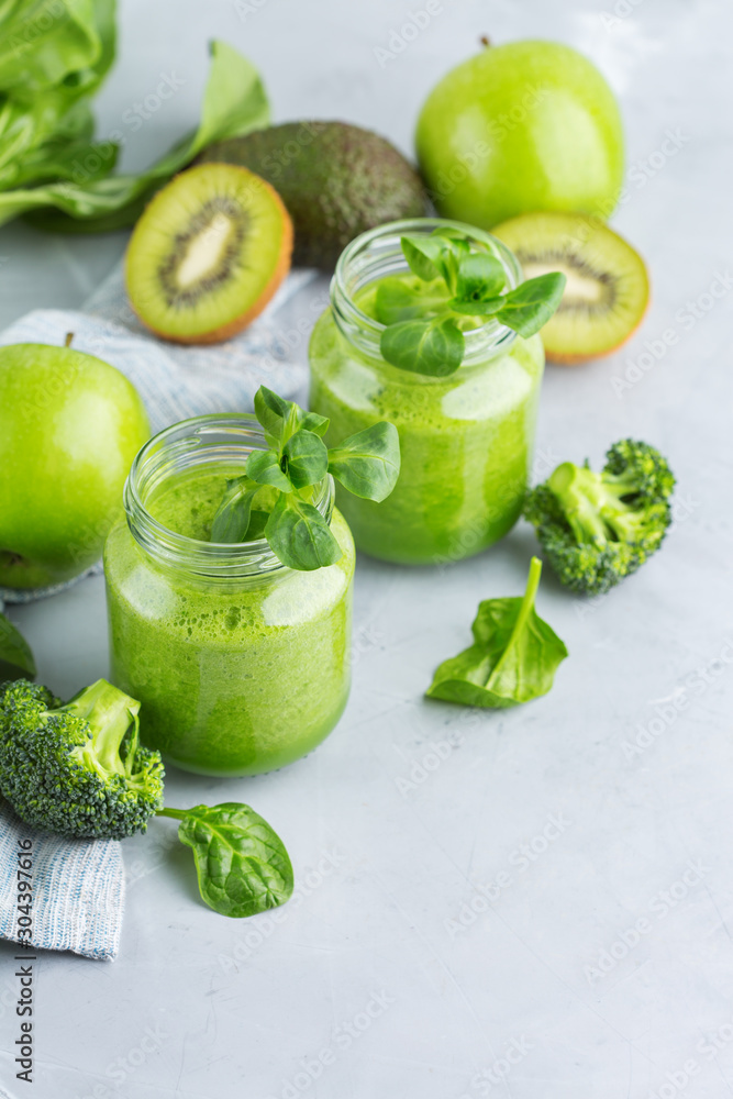Green smoothie with vegetables for healthy, raw, vegan diet