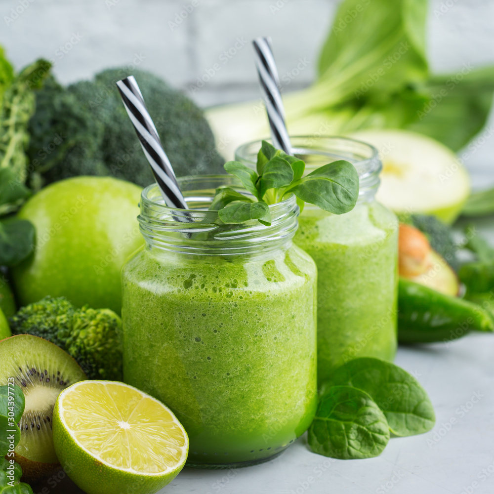 Green smoothie with vegetables for healthy, raw, vegan diet