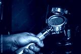 Barista grinding coffee