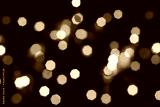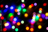 Christmas lights are lit on a black background. Copy the area for the top view text.