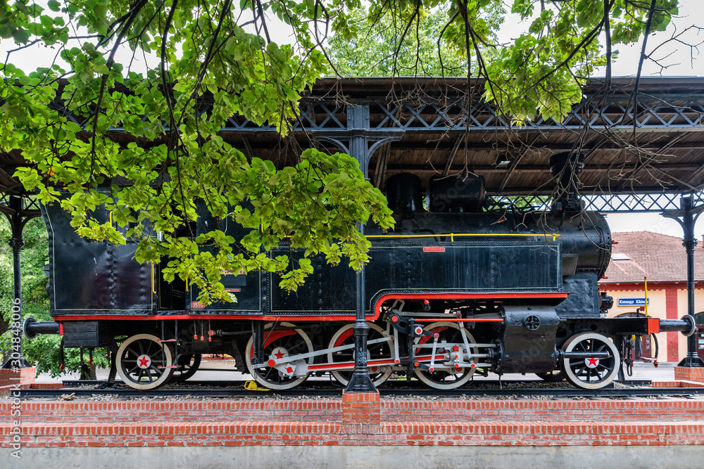 Kikinda, Serbia - July 26, 2019: An old locomotive set in Kikinda. The steam locomotive was made in Budapest in 1916, with 470 horsepower at 60 km/h.