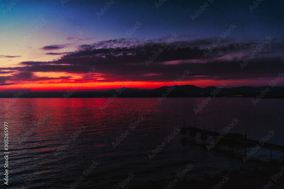 Deep blue red sunset over the sea