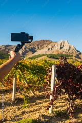 Photo shooting on mobile phone in the vineyard