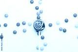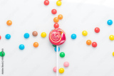 multi-colored chocolate dragee lies in the form of a cross on a light background