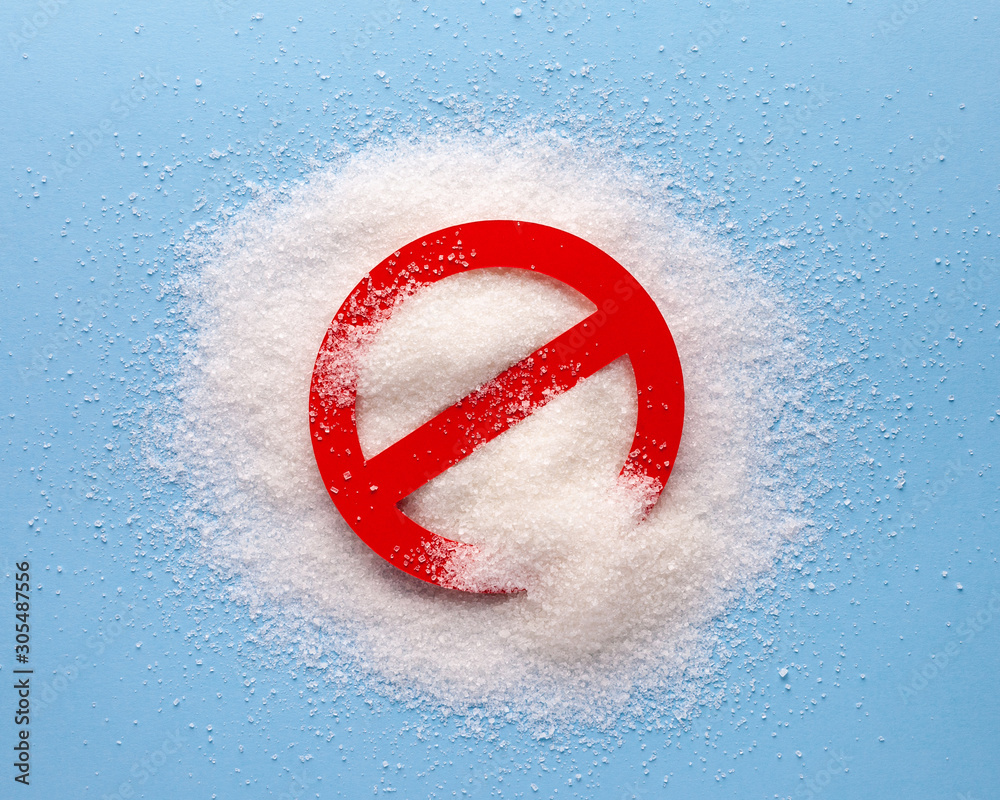 Food and diet concept. No sugar. Diabetes concept. Blue background.