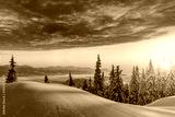 Fantastic winter landscape during sunset. colorful sky glowing by sunlight. Dramatic wintry scene. snow covered trees under warm sunlit. Sunlight sparkling in the snow. Splendid Alpine winter