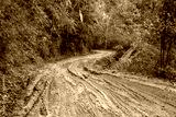 road wet muddy of backcountry countryside in rainy day