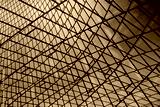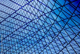 Collage of structural glazing facades. Modern architecture fragment with glass ceiling, roof or wall made of transparent panels. Abstract geometric background with complex grid pattern.