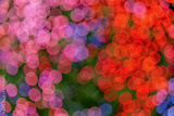 Red, blue, pink and purple Christmas light shiny abstract round bokeh on dark background. Colourful Glitter bokeh from blurry decoration bulbs.