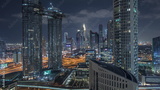 Aerial night view of new skyscrapers and tall buildings Timelapse
